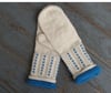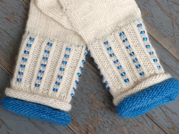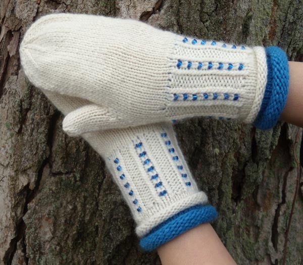 Available in 4 sizes to fit children up through Adult Large these mittens have a contrasting color cuff and beaded ribbing that add a touch of glamour to your winter.