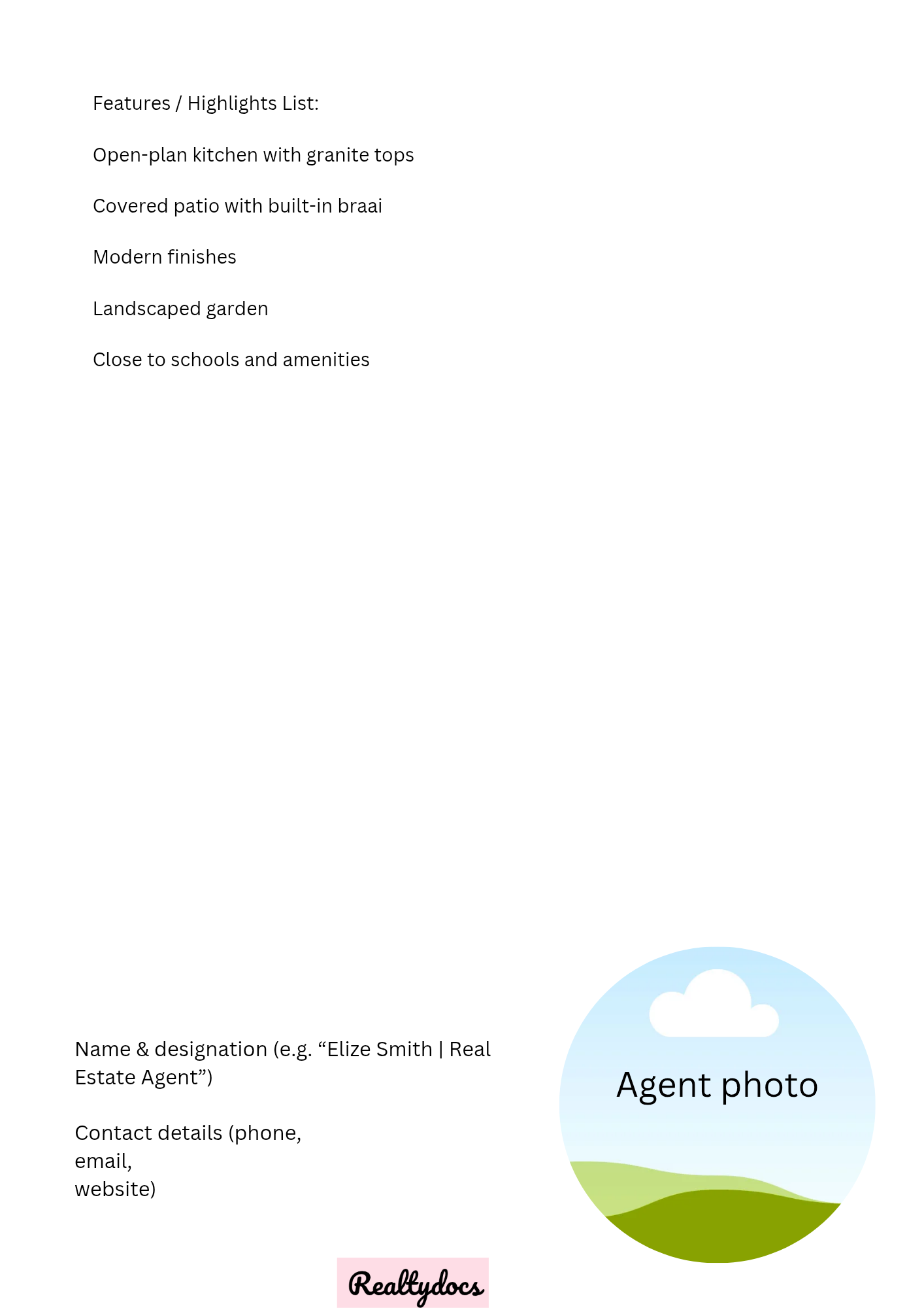 • 1 x Editable Property Feature Sheet Template (Canva link)