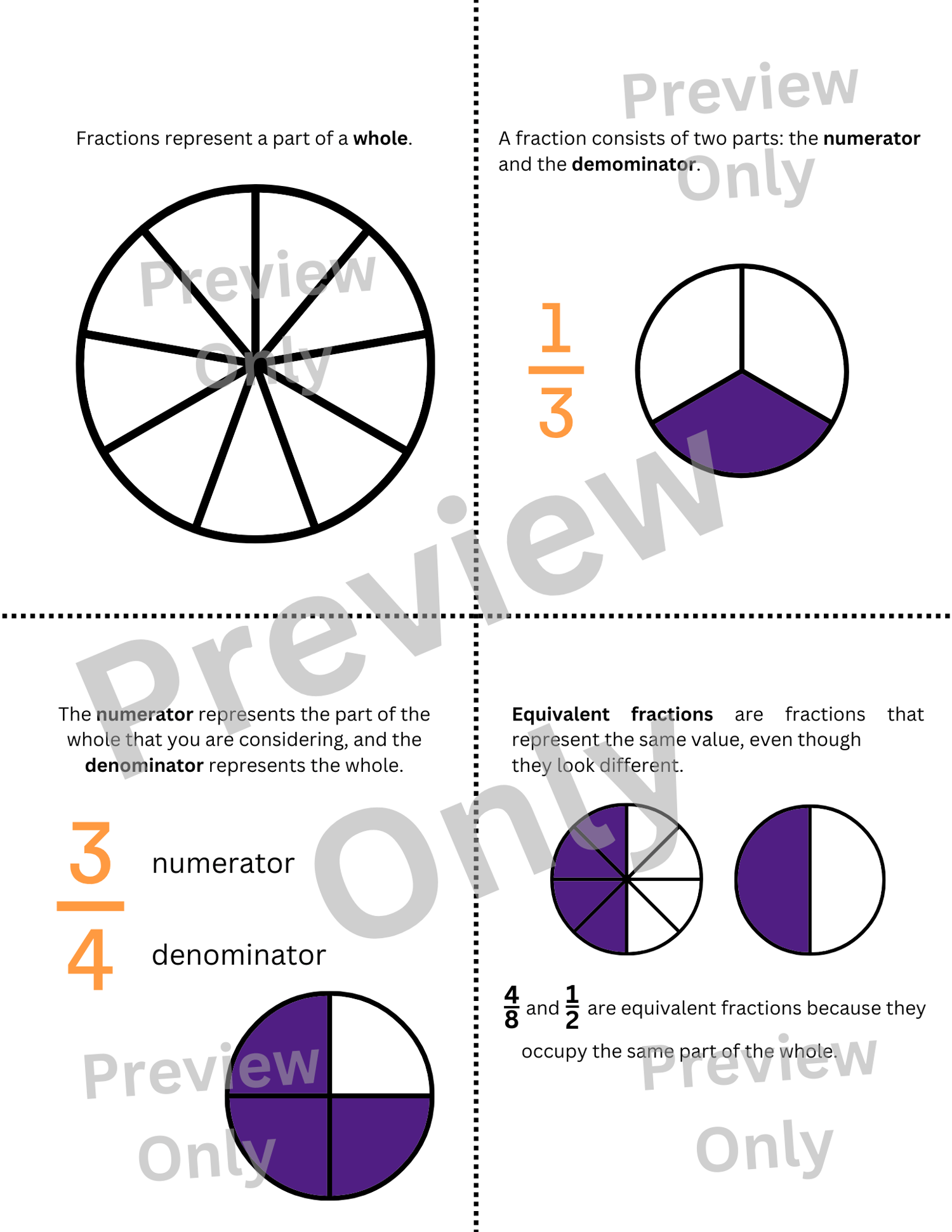 Fraction Cards to help children memorize and understand important concepts of fractions that will make learning easier.
