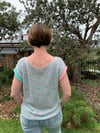 There are only three stitches in this pattern - TSS, TDC and yarn overs. The mosaic pattern is formed using a simple mosaic technique where the TDC covers a yarn over from the previous row. There are no colour changes mid row on this tee!