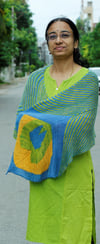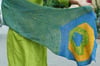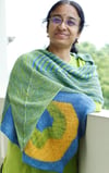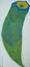 The Mayur Wrap is inspired by colors of the peacock and is shaped like the peacock feather.