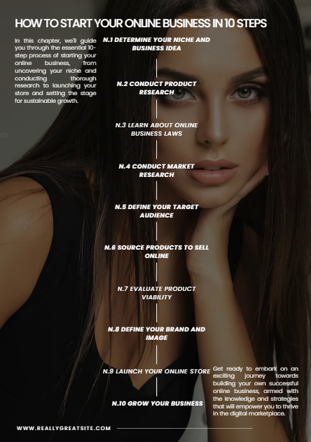This 22-page ebook is a straightforward guide that doubles as your business-planning template. Inside, you’ll work through 10 essential steps for starting an online business, including choosing a niche, conducting product and market research, understanding basic online business laws, identifying your target audience, sourcing products to sell online, checking product viability, and more.