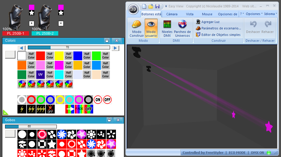 Esta Librería SSL2 está optimizada para trabajar con Magic 3d Easy View. Es decir para ver una representación 3D de las secuencias que estemos realizando con Freestyler, QLC+ o cualquier otro soft que se conecte con Magic 3d.