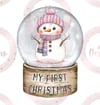 Pink snowman snow globe - With & without My first Christmas Text