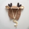 The Fawn Bonnet is a sweet-looking reindeer hat with antlers and ears. The ears are two-toned and double layered, making them luxurious and plush while maintaining a realistic deer shape. This rustic, woodland animal inspired design is perfect for the fall and winter seasons, or as a Christmas holiday gift! They also make great photography props and accessories for newborn shoots, as well as cosplay outfits and Halloween costumes. Sizes include: baby, toddler, child, and adult.