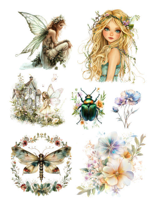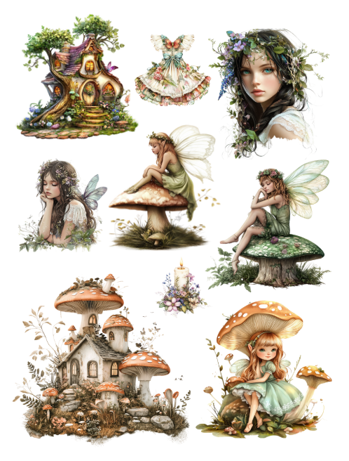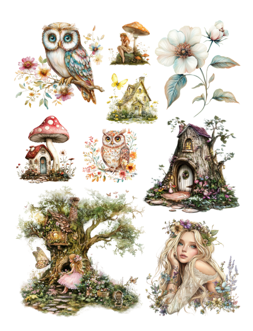 Pull out your scissors and glue and dive into the magical world of enchanted and magical forests with beautiful fairies, forest houses, crystals, mushrooms, jars chock full of forest life, doors entering trees, portals, dragons, moths, birds, animals, owls, deer, bear, fox, squirrel, elves, crowns, wreaths, scenery, children delighting in the forest, unicorns, wands, lantern, gnomes, woodland men and women, and more with this artistically beautiful clip art cut and collage book.