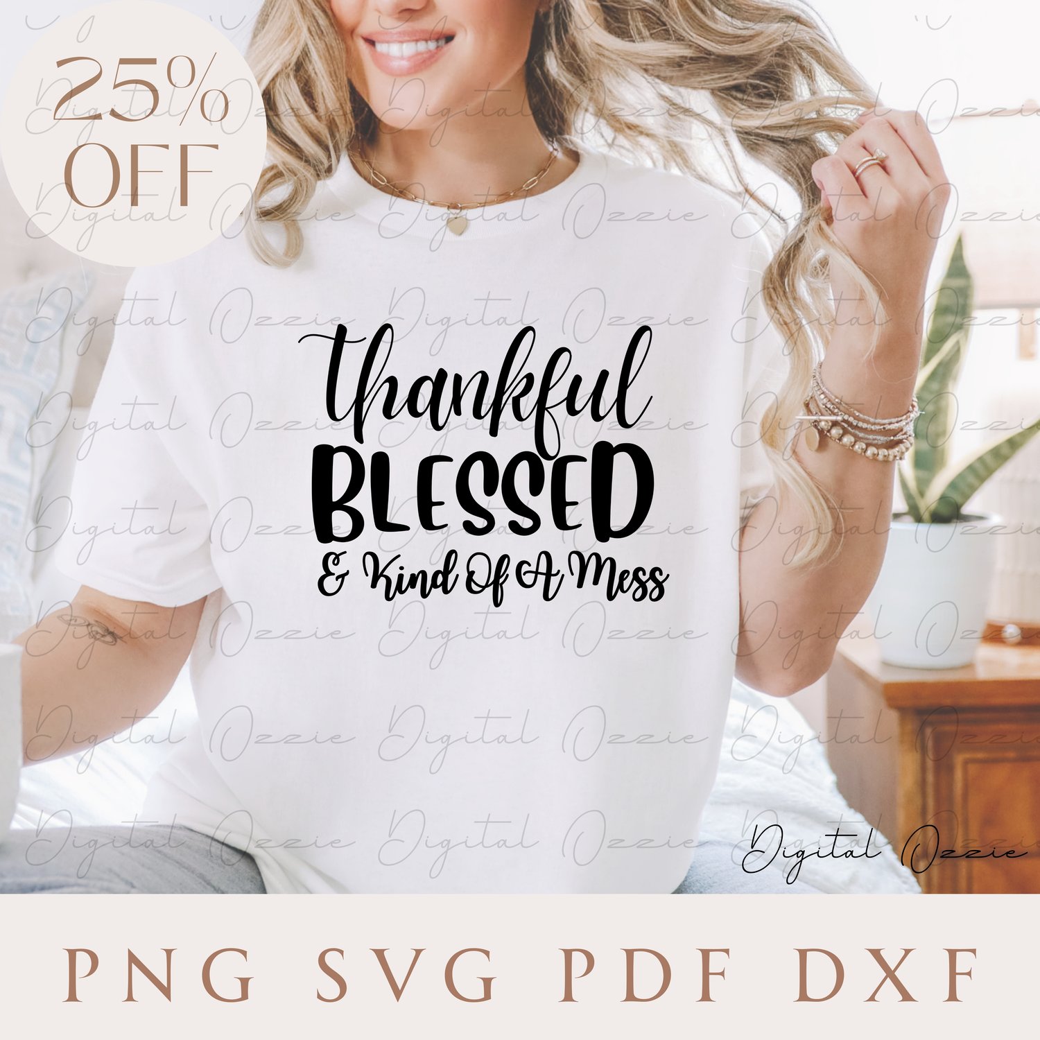 Thankful Blessed & Kind of a Mess SVG PNG PDF DXF | DIY Craft File | Fall Shirt Design | Small Business Use | Cutting Machine Friendly Digital Ozzie Design