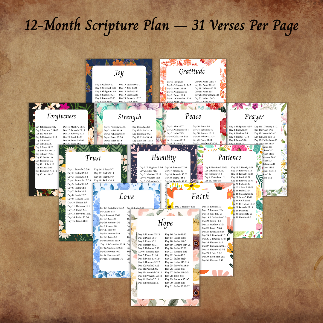 Scripture Writing Plan | 12-Month Printable Bible Verse Planner | Daily Scripture Journal | Christian Faith Digital Download PDF