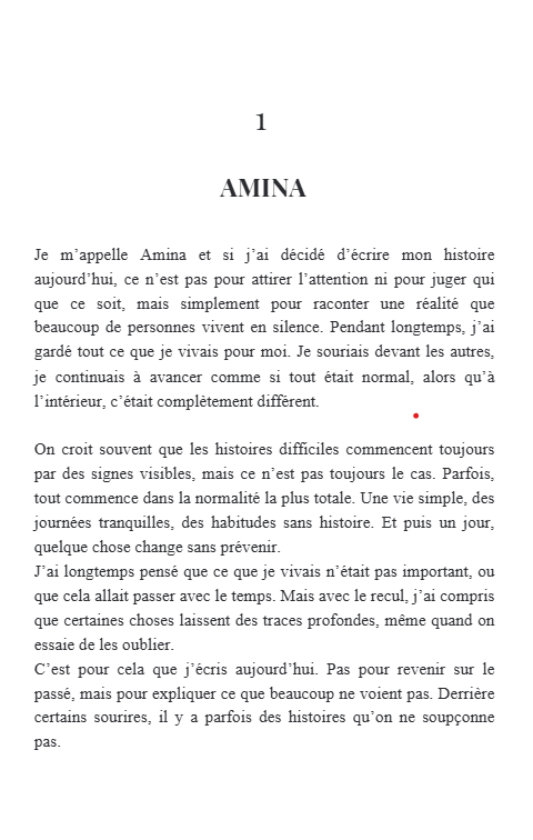 Ce livre retrace son parcours, de l’illusion à la prise de conscience, jusqu’au moment où elle décide de se relever et de reprendre sa vie en main. C’est une histoire forte, émotive et réaliste qui met en lumière une vérité souvent silencieuse.