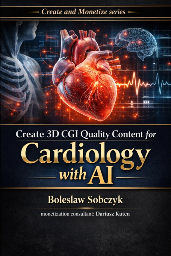 The book is authored by Boleslaw Sobczyk, a renowned medical CGI creator and AI engineer known for pushing the limits of AI-driven anatomical visualization, together with Dariusz Kuten, a digital asset monetization specialist with deep expertise in turning creative output into sustainable income.