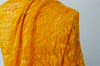 Finished dimensions of the sample shawl: Span width of 186 cm (73 ¼ inches) and a depth of 67 cm (26 ½ inches), measured after blocking.