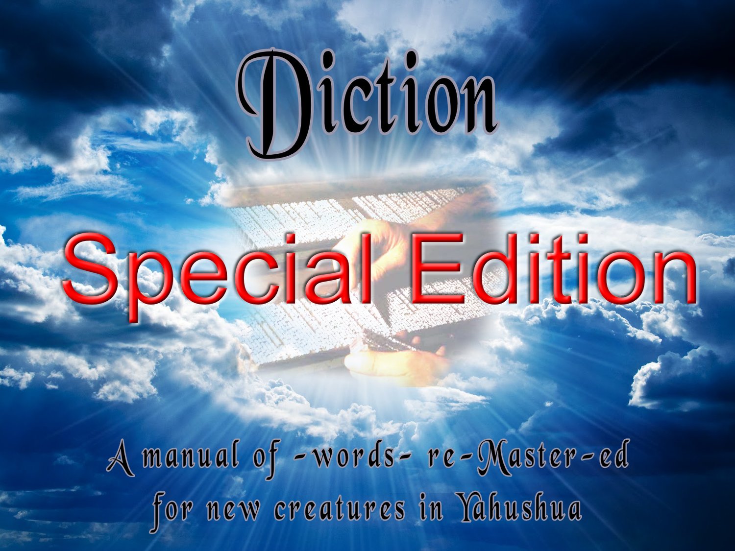 This is the official release of Diction Special Edition. the full 2nd Edition book in .PDF format. It is a beautifully written exposition sharing everyday words in a Spiritual way. The revelations throughout this book will bring you to a much fuller understanding on how to walk with Yahushua (Jesus). It still requires the reader to be willing to read, digest, and grow if they want change and have eternal benefits.