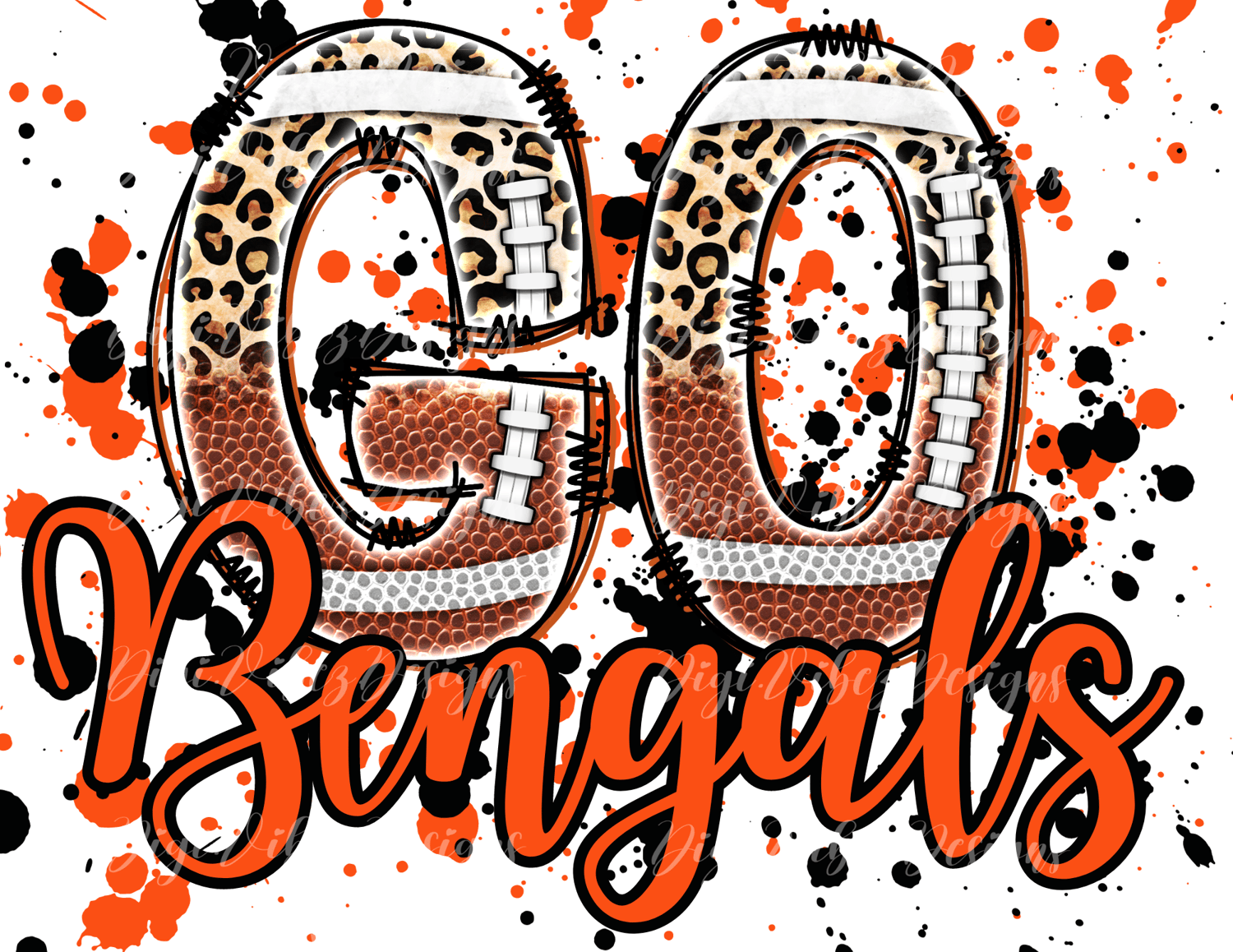 Go BENGALS Leopard Football Splatter PNG Digital Download