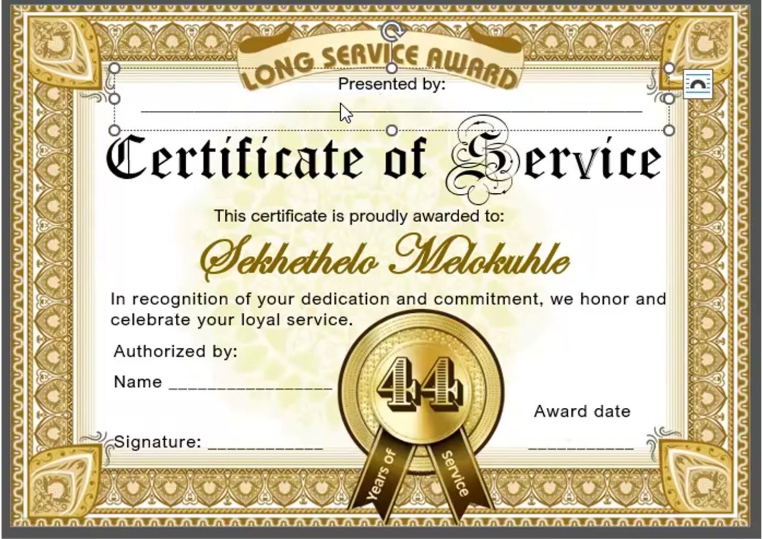 44 Years of service | Editable Microsoft Word template | Landscape G103L440134