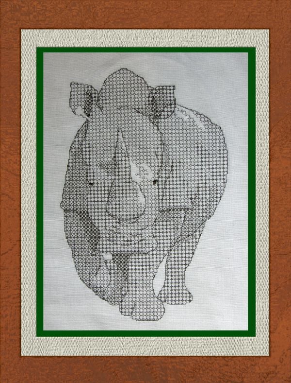 Meet The Warrior—my tribute to the white rhino and a reminder of what we stand to lose. When I was a child, a rhino appeared on my bedroom wall one night, a perfect shadow cast by toys at the window. I could never recreate it—just as we can never bring a species back once it’s gone. Stitching this piece keeps the rhino’s story close to your heart and your home.
