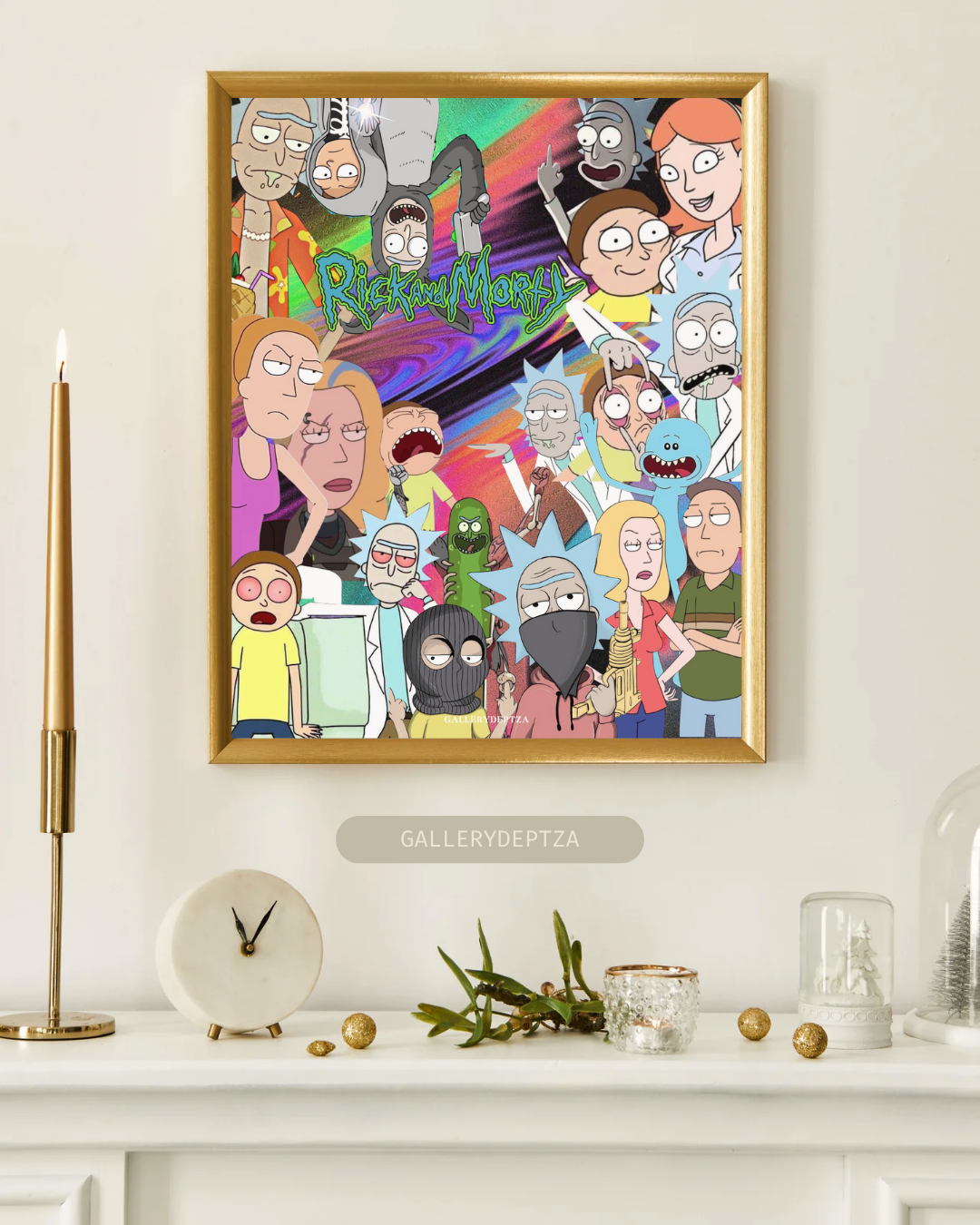 This Rick and Morty-inspired digital poster blends bold animation with surreal, mind-bending colors that capture the chaos and genius of everyone’s favorite interdimensional duo.