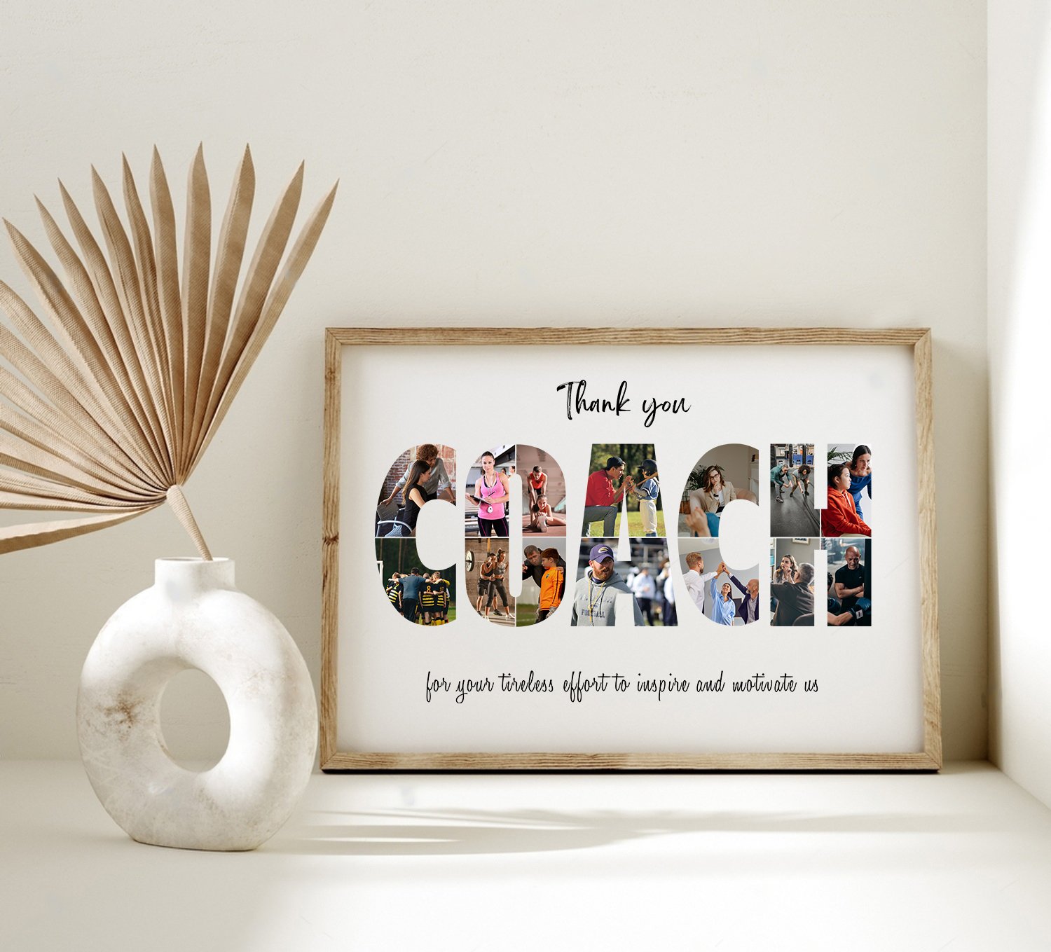 Editable 14 photos template, Coach Photo Collage, Gift for Coach, Personalized Sports Coach Frame, Thank you Gift