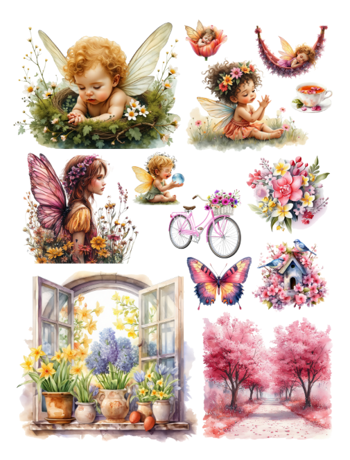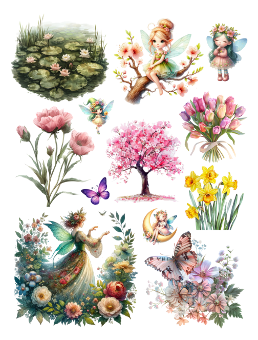 SPRING FAIRIES EPHEMERA TO CUT AND COLLAGE BOOK