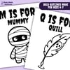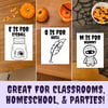 - 1 PDF file with 5 Halloween Alphabet Coloring Pages