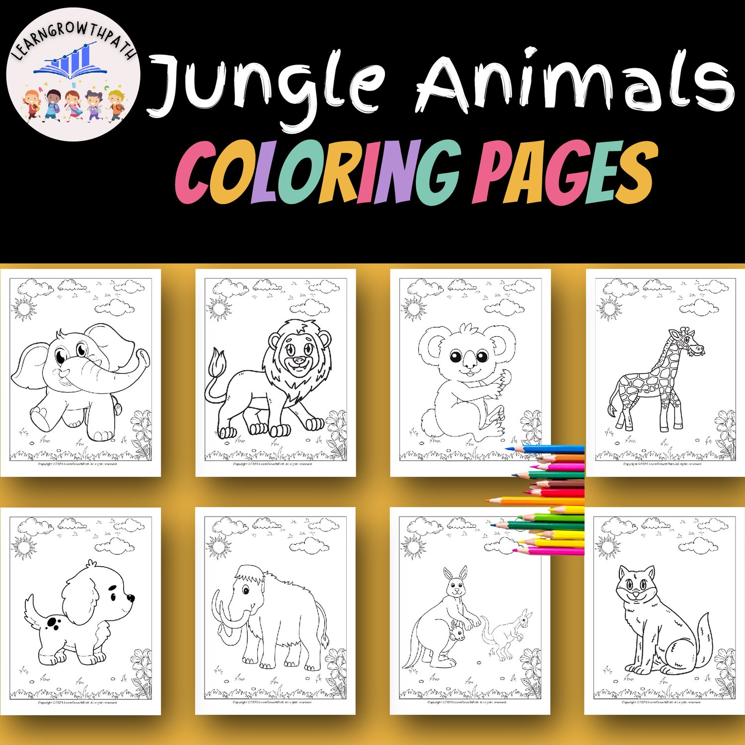 20 unique jungle animal coloring pages in PDF format