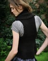 Balboa waistcoat consists of a circular piece connected by a rectangle forming the back of the garment. Although the circular shape, the entire garment is knitted flat using straight needles. The techniques used in this piece are cast on and off, knit and purl and blackberry stitch. The PDF knitting pattern includes complete written instructions and diagrams with measurements.
