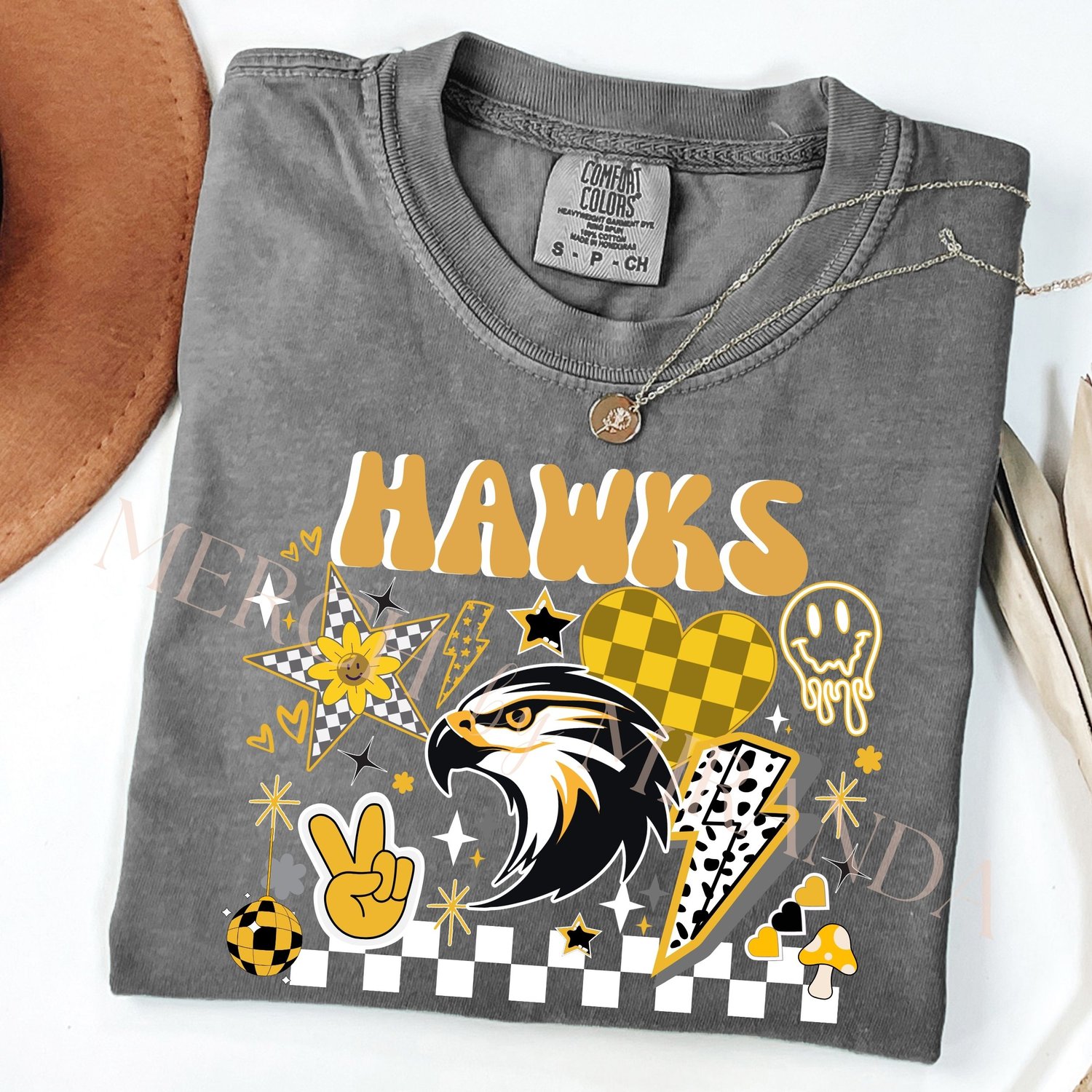 Hawk Mascot - Hawks - Retro Groovy Theme - School Spirit - Digital Download