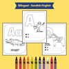 - The first part of the book consists of lower and upper case letters to color along with fun images to bring the alphabet to life. Each letter works for both languages. For example: S is for Sweden (S som i Sverige) and D is for Dragon (D som i Drake) - making it easier for bilingual kids to understand each letter.
