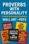 The Proverbs with Personality bundle includes five high-resolution faith-based designs in both PNG and PDF format. Perfect for instant download and printing at home or your favorite print shop.