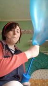 Bianca pumped to pop this blue balloon, it was so loud it made her ears ring