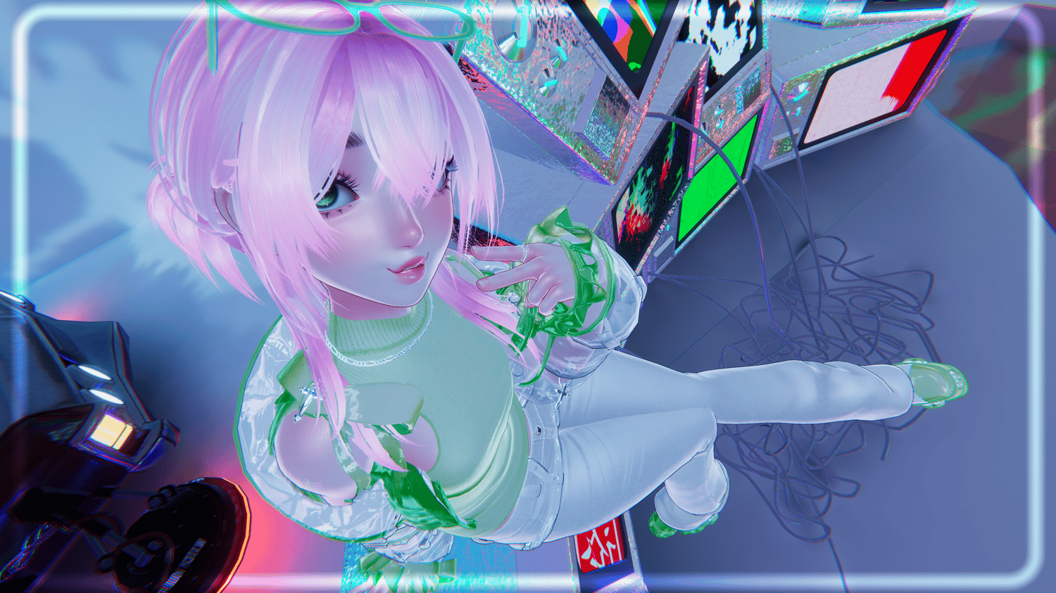 VRBase by Zinpia ・ Sunny Head by Sivka ・ SkinnyGlasses, AnneJeans by Nessy! ・ Matcaps, Icons by AWMI ・ Hair Tex by CicieaaaVR ・ Hair Matcap by Pirranhaz ・ Tsumugi's Hair, Airi's Bun Hair, Sleeveless Turtleneck Shirt by Saikura ・ Silhouette by Cringy ・ Crystal Shader by uniuni