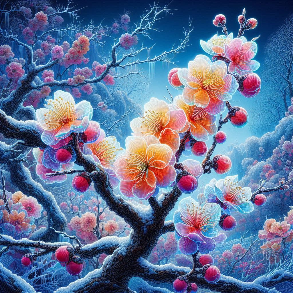 The cold evening, the plum blossoms appear particularly bright and charming under the moonlight. Is the spring scenery boundless?