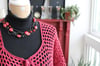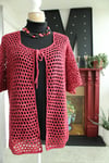 Marie’s Garnet Sweater is an open, airy cardigan with a wonderful drape. Simple and elegant, a square neck with sweet tie closure. Complete with charts and schematics.