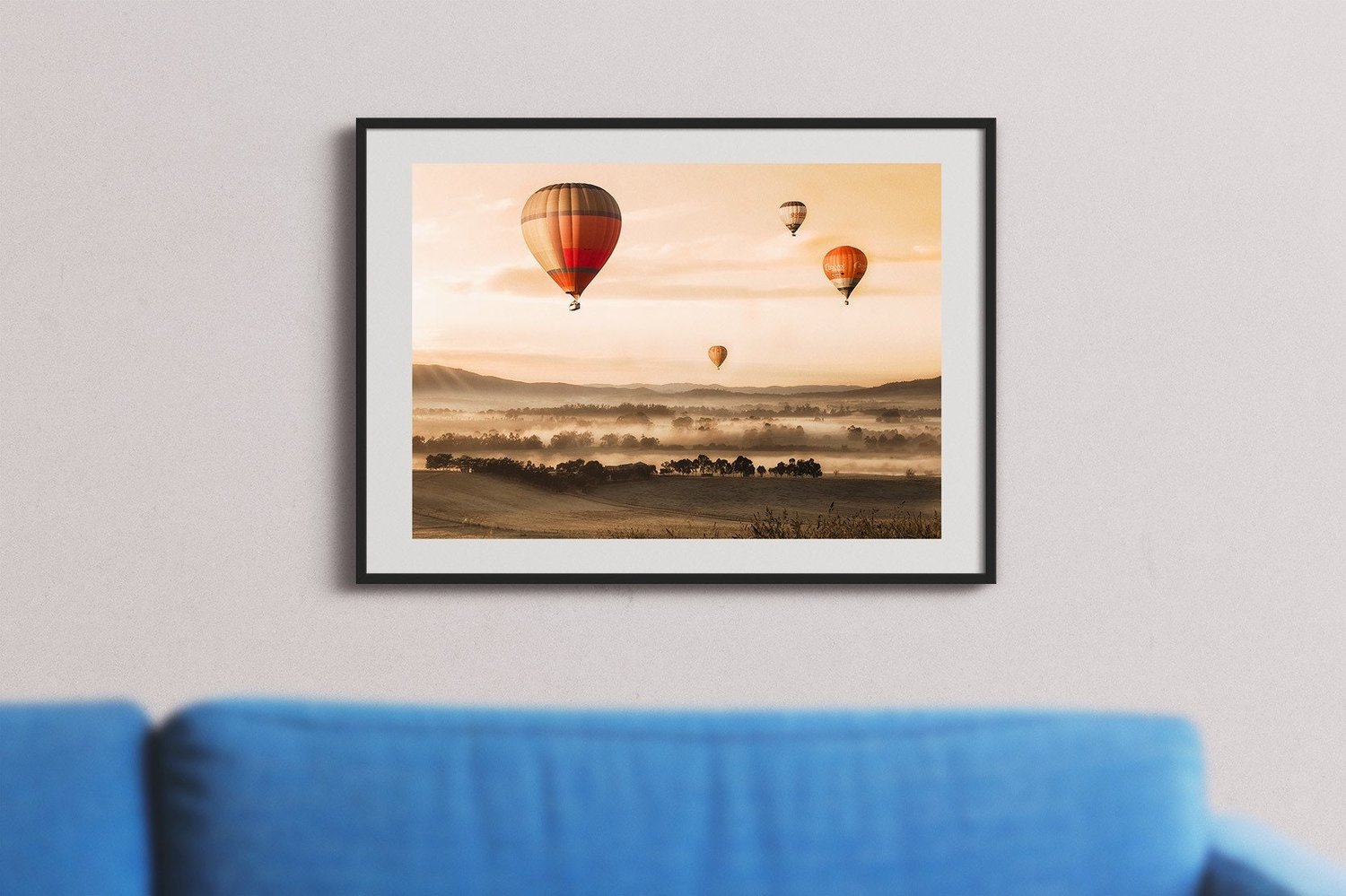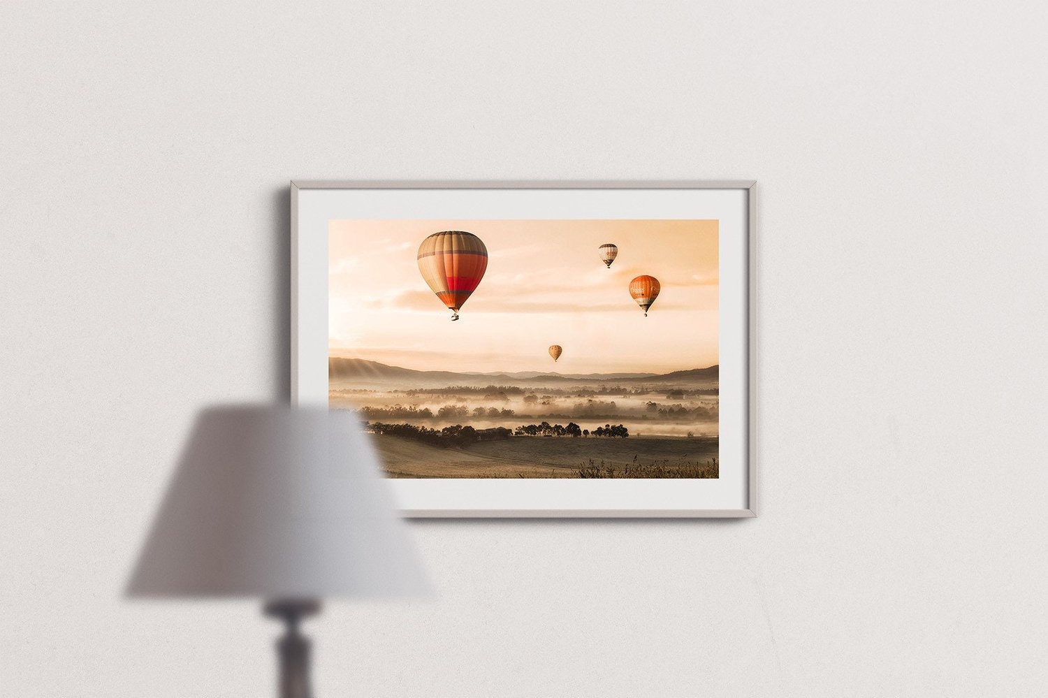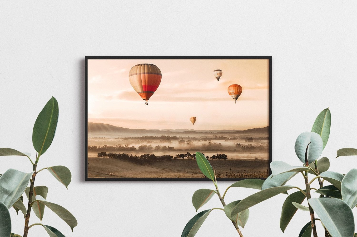 Hot air balloon print, landscape canvas wall art | modern boho, bohemian style wall decor