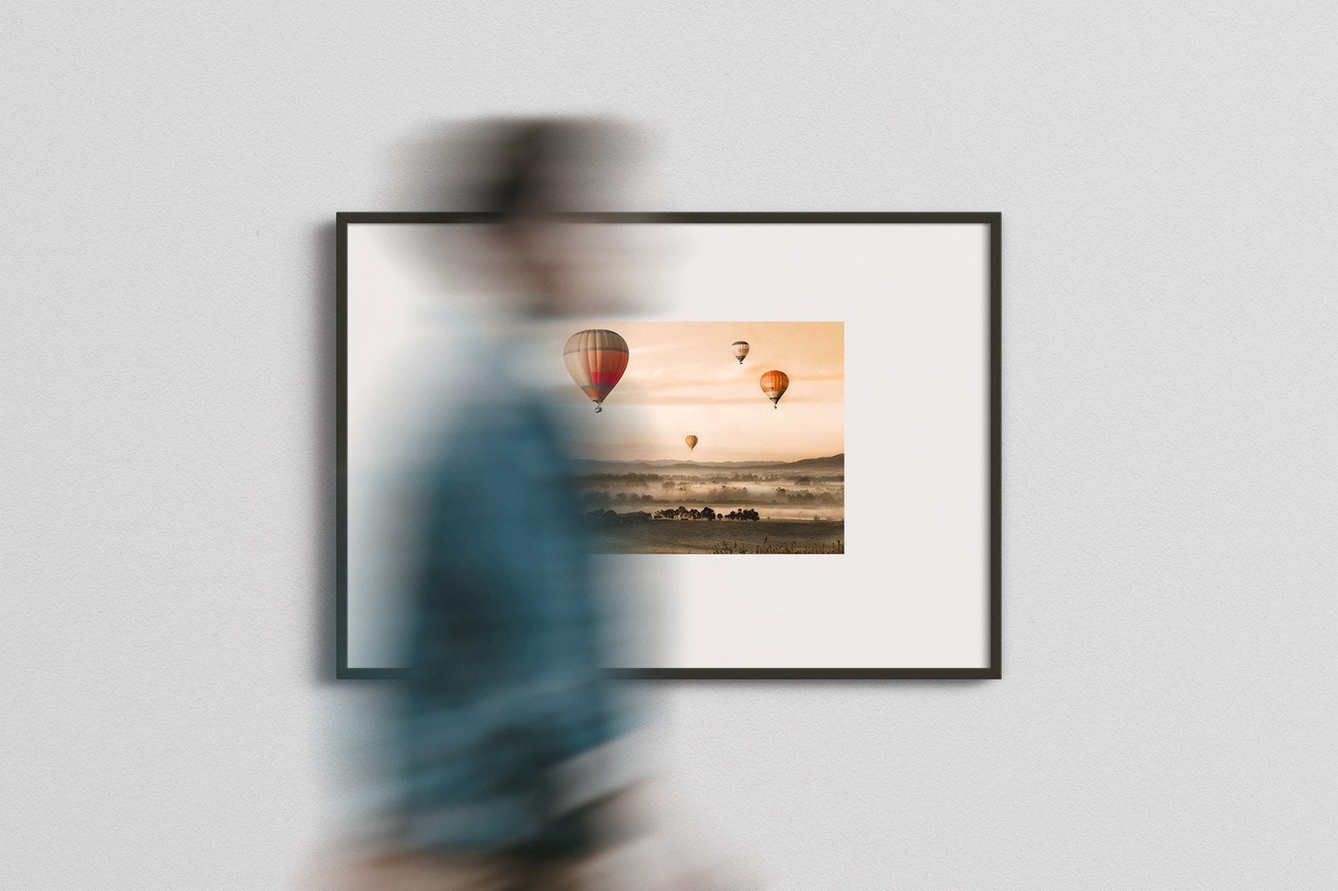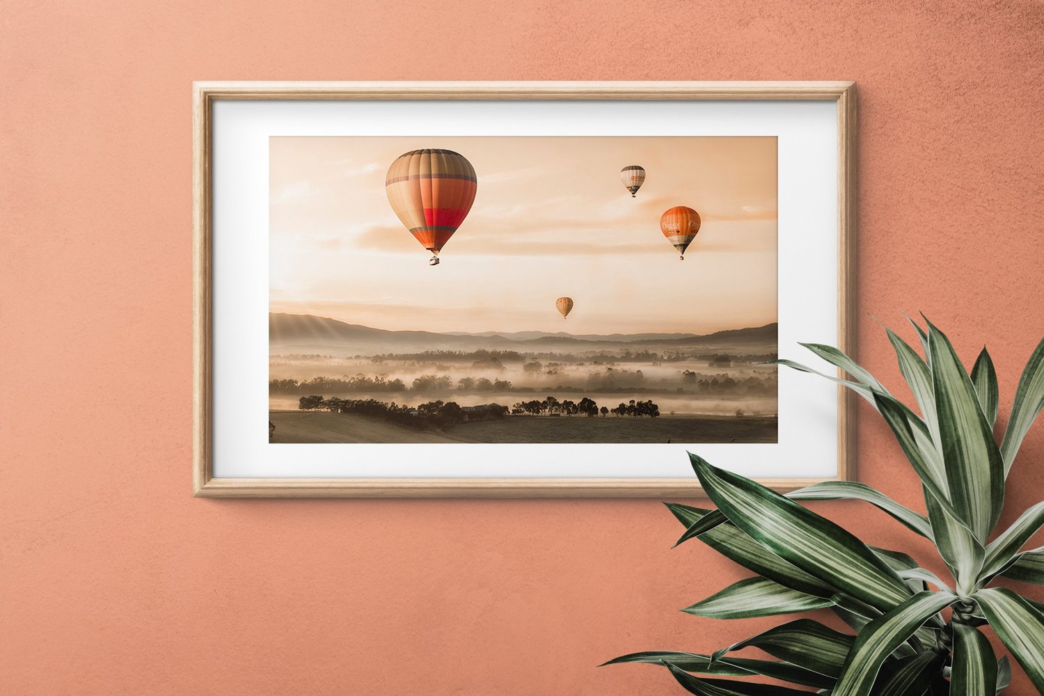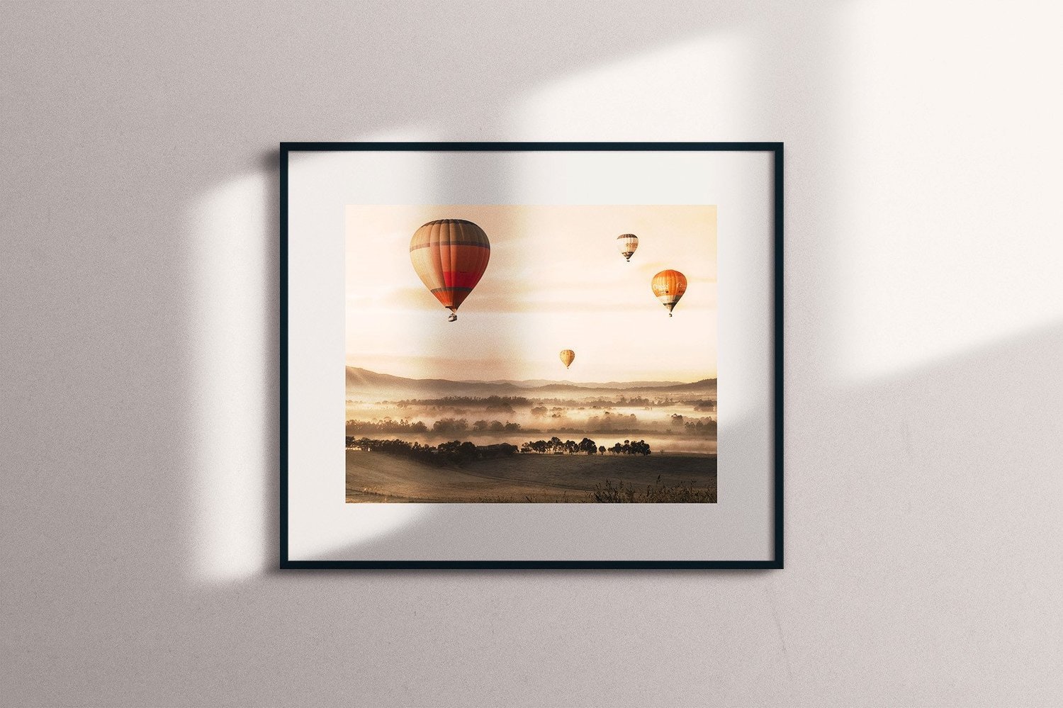 Hot air balloon print, landscape canvas wall art | modern boho, bohemian style wall decor