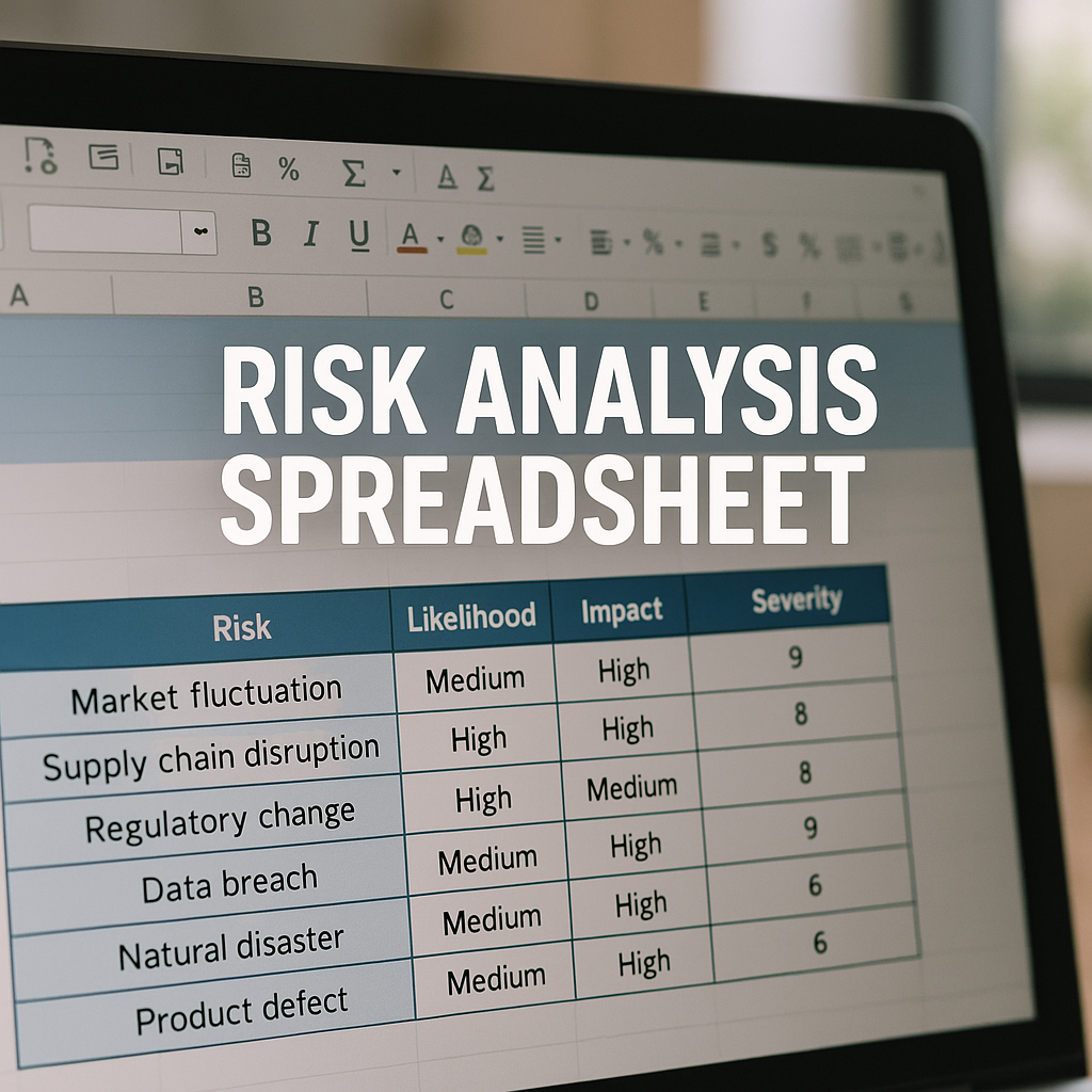 This Risk Analysis Spreadsheet provides a structured tool for evaluating and prioritizing business risks. It includes risk categories, likelihood and impact ratings, mitigation actions, and responsible parties—supporting data-driven decision-making and effective risk management planning.