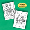 🍀 Instantly download the printable files in PDF 8.5"x11" and JPEG to color at home or digitally.