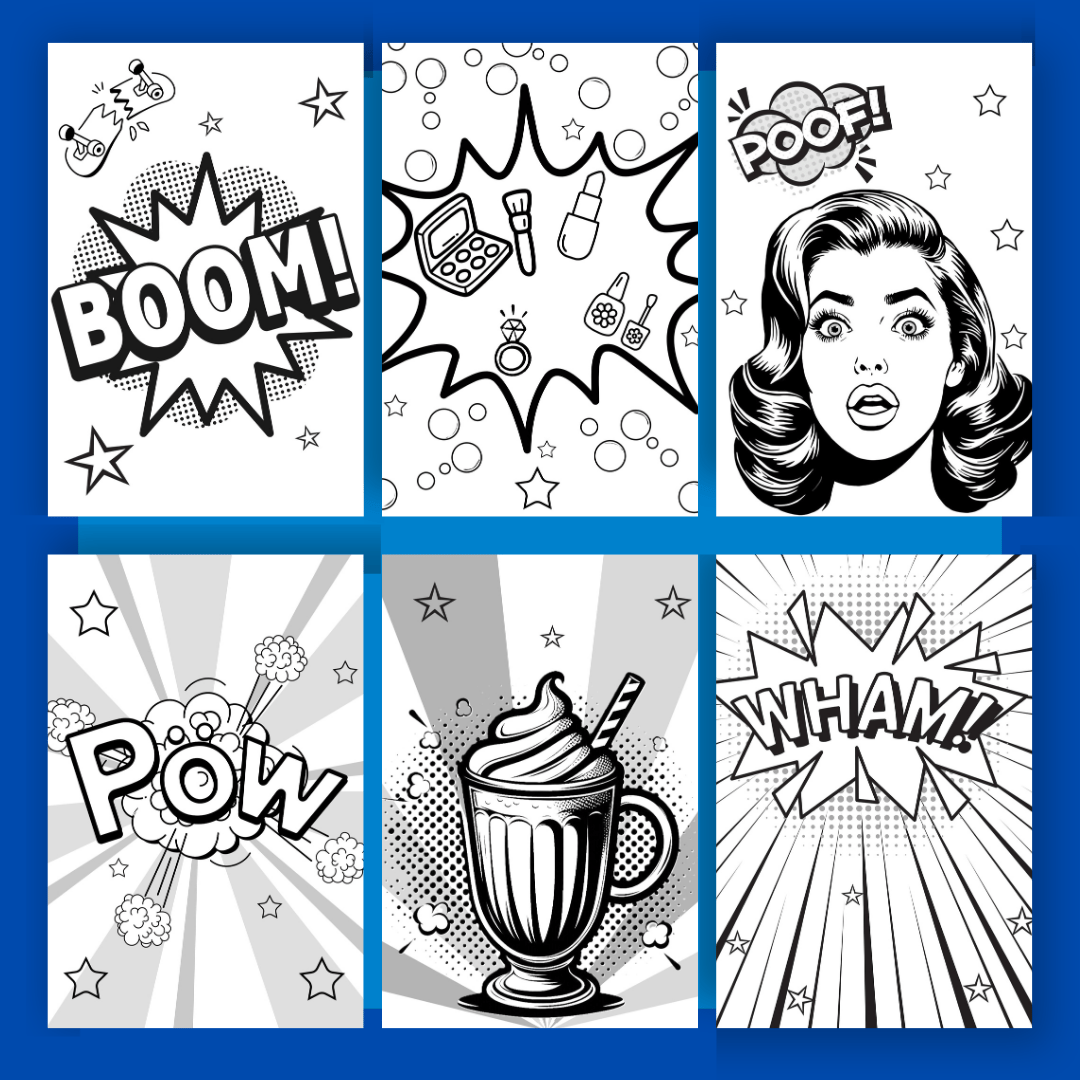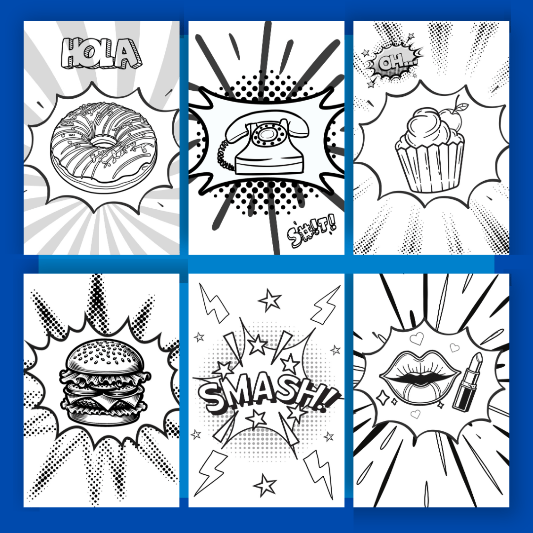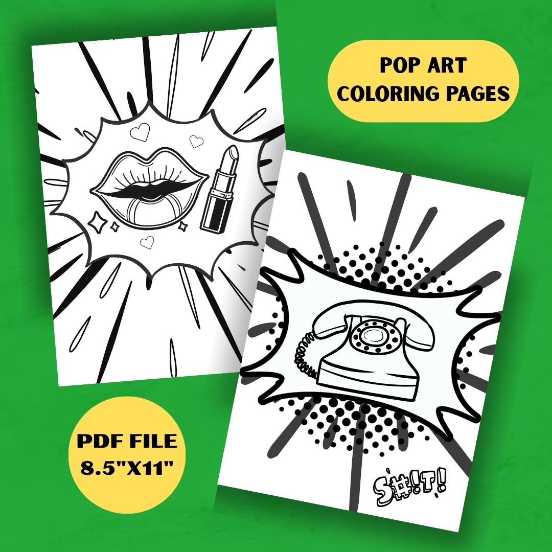Unleash your creativity with these 12 pop art coloring pages! They are 12 unique and detailed black-and-white illustrations with grayscale of the elements that make up the image, paying tribute to the iconic style of pop art. Perfect for teenagers and adults who love artistic expression and modern design! 🎨✨