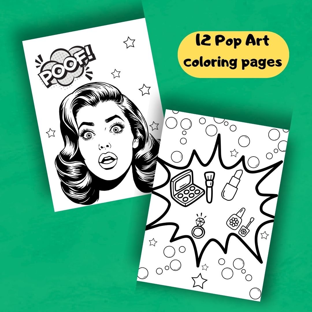 12 Pop Art coloring pages / pop art coloring pages. Instant Download.