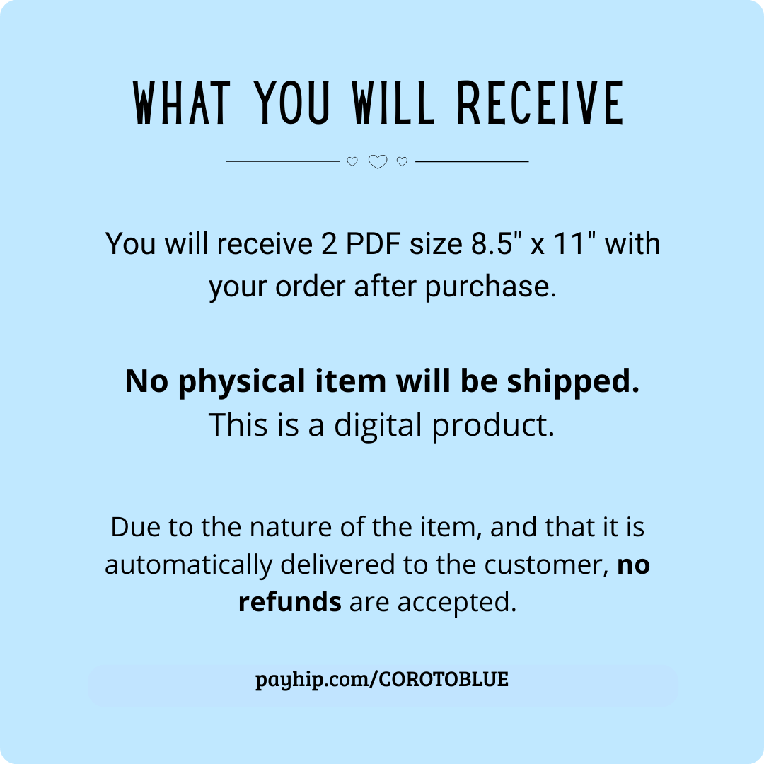 TERMS & CONDITIONS: Please note that this is a digital product, not physical, once purchase is complete, files will be available for immediate download and no refunds or cancellations are accepted.