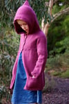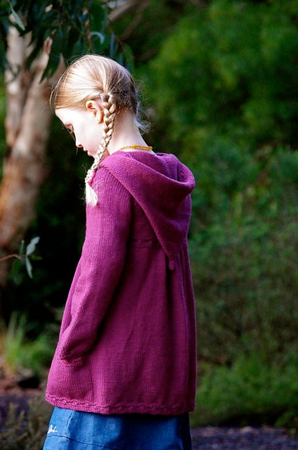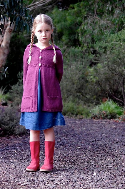 Annabel is every child’s dream hoodie. It’s warm and snuggly; designed to be worn as a jacket to ward off those winter chills. This seamless coat is adorned with daisy stitches on the cuffs, hemline, hood, waistline and those adorable pockets. Annabel features subtle back gathers, the sweetest inset pockets and is finished with an optional pixie-style hood.