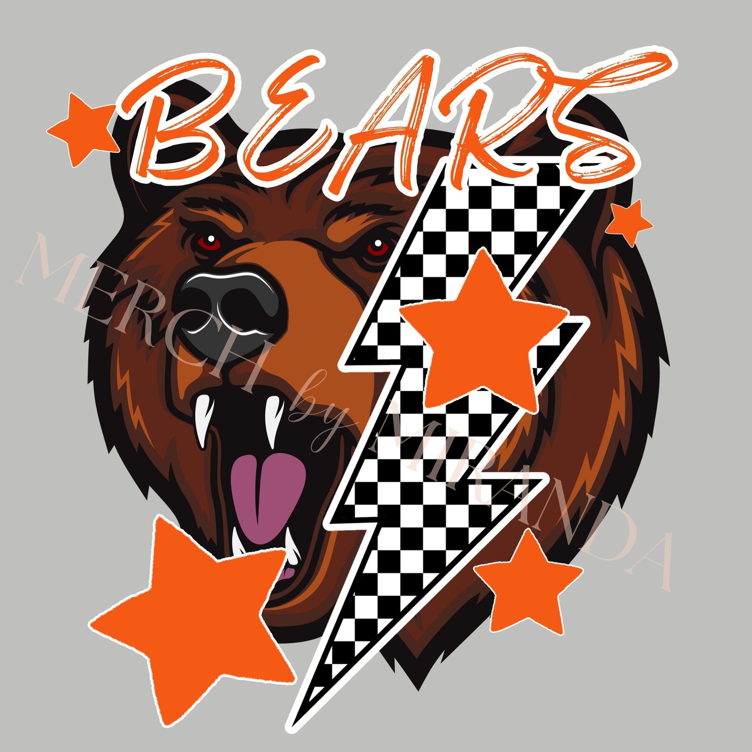 Bear Mascot Orange | Sublimation Design | Digital Download | School Spirit Shirt PNG | DTF Design | Lightning Bolt-Checkered with Stars - Bears