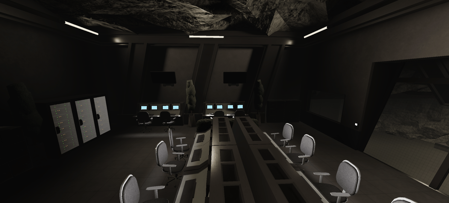 • Many control rooms, e.g., a room with monitors and cameras.