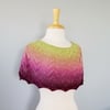 Sizing: To figure out the correct size for your project, measure the intended wearer around the body with the arms down at the sides at the spot where the arm bends at the elbow. Add about 6" to that measurement for ease. This measurement is the lower circumference of the capelet. When working larger sizes with 2 gradient cakes, alternate rounds with both cakes to maintain the gradient colors. Instructions for lengthening the capelet are included.