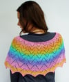 - Yarn: Fingering weight gradient yarn; 400, 425, 500 (575, 660, 750) (850, 975, 1100)yards. Models shown in Frabjous Fibers/Wonderland Yarns Blossom (Center-pull gradient sock yarn: 4 oz., 425 yards; 80% superwash merino/20% nylon: colors #11 Trillium and #9 Sage, 1 cake (https://frabjousfibers.com)