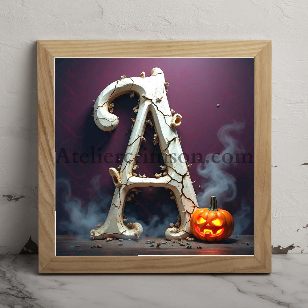 The letter A spooky character skull Halloween Discover our Spooky Skull Alphabet! Each character is a 3D masterpiece of bone and shadow. Perfect for Halloween designs, gothic projects, or unique wall art. 💀✨ Click to download this high-resolution character and elevate your creations with haunting elegance!