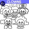 Contains 5 silly clowns along with horns, a balloon, a flower and 5 of their clowny faces!