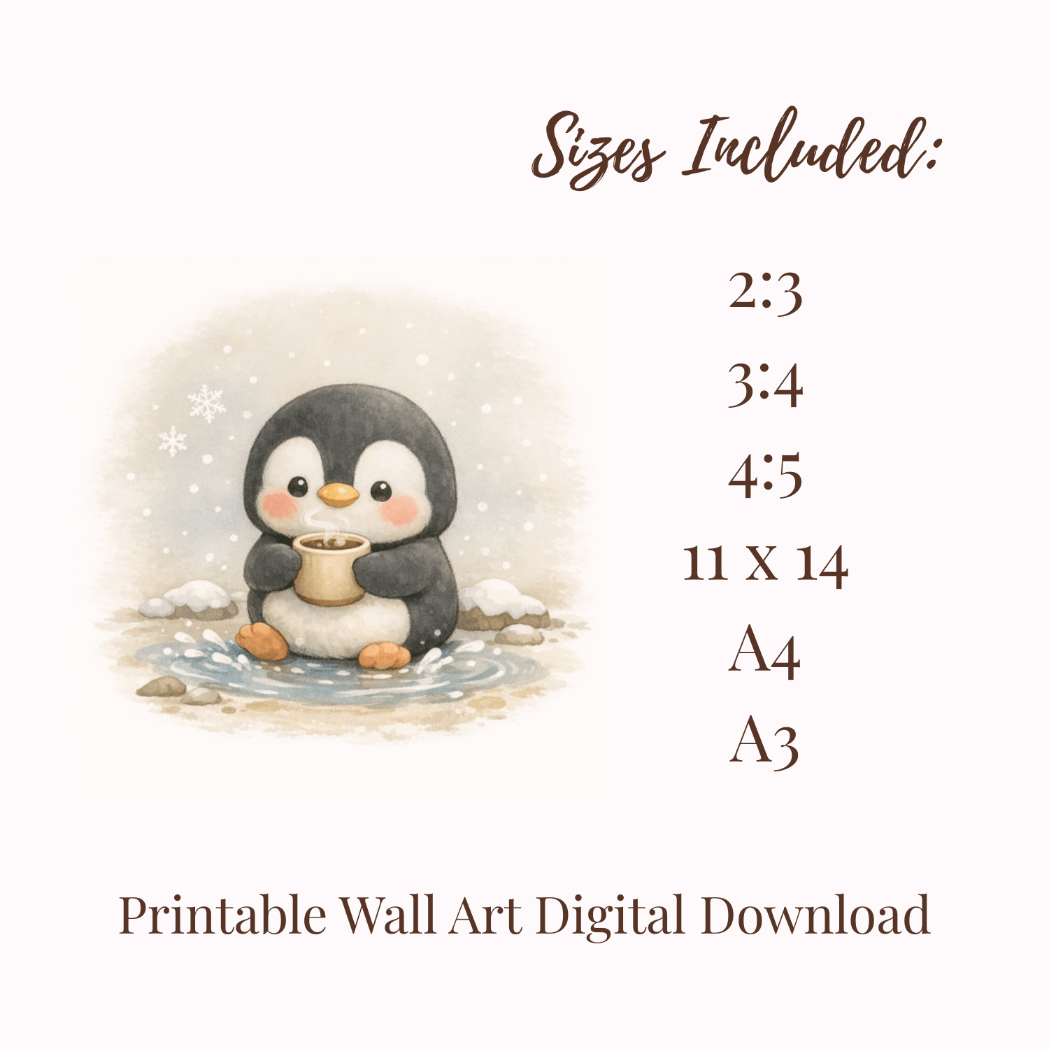 Bring calm, modern magic into your nursery, kids’ room, classroom, or family space with this painterly printable wall art featuring a gentle penguin from the Creatures of the Land & Lake collection. Designed with softness and intention, this artwork adds warmth, comfort, and quiet wonder to any environment.