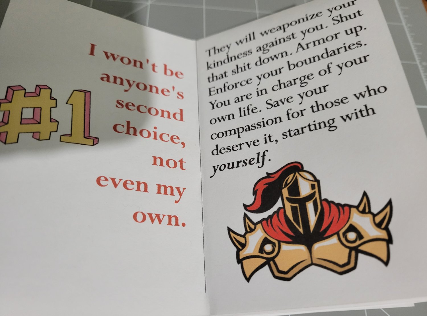 "Remember This Stuff" is a mini-zine of things you should remember when you need to be nicer to yourself. Words of encouragement and self-help from one stressed-out human being to another.