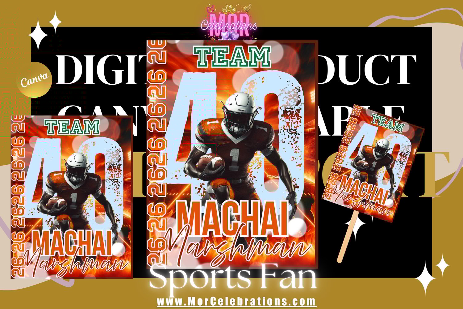Enjoy easy mounting options with a peel-and-stick handle or a wooden stick. Conveniently available for instant download. Show your team spirit in style and make every event memorable!