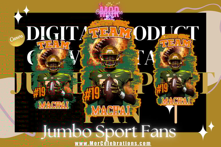 Enhance every game, pep rally, or just have keepsake fan from MorCelebrations, designed for Creating Unforgettable Moments. Bring your energy by customizing it with your athlete's name, photos, team name, team colors, school name, or school year.